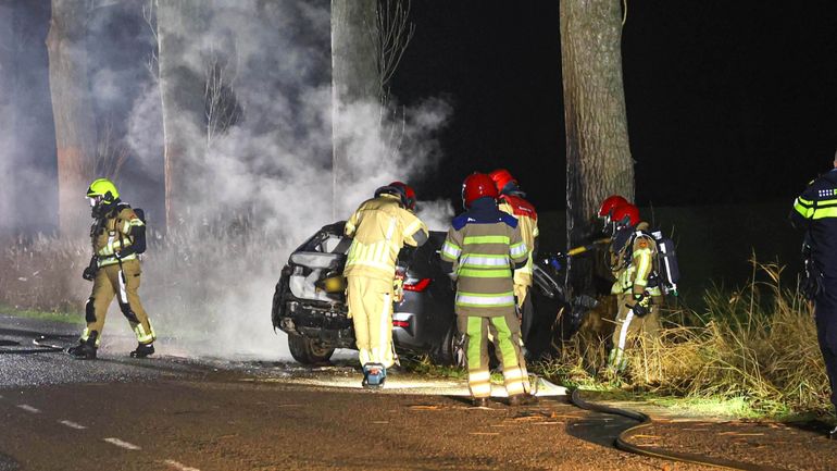 ENS •Een auto is vrijdagavond in brand gevlogen na een botsing tegen een boom op de Ramsweg in het buitengebied van Ens. Volgens een woordvoerder van de brandweer kwam er na de botsing in eerste instantie...