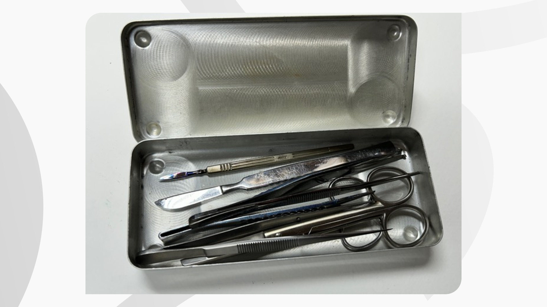 Als arts in opleiding moest je altijd twee dingen aanschaffen: een microscoop en een snijdoosje. De gereedschappen in zo'n doosje zijn nodig om te leren snijden.