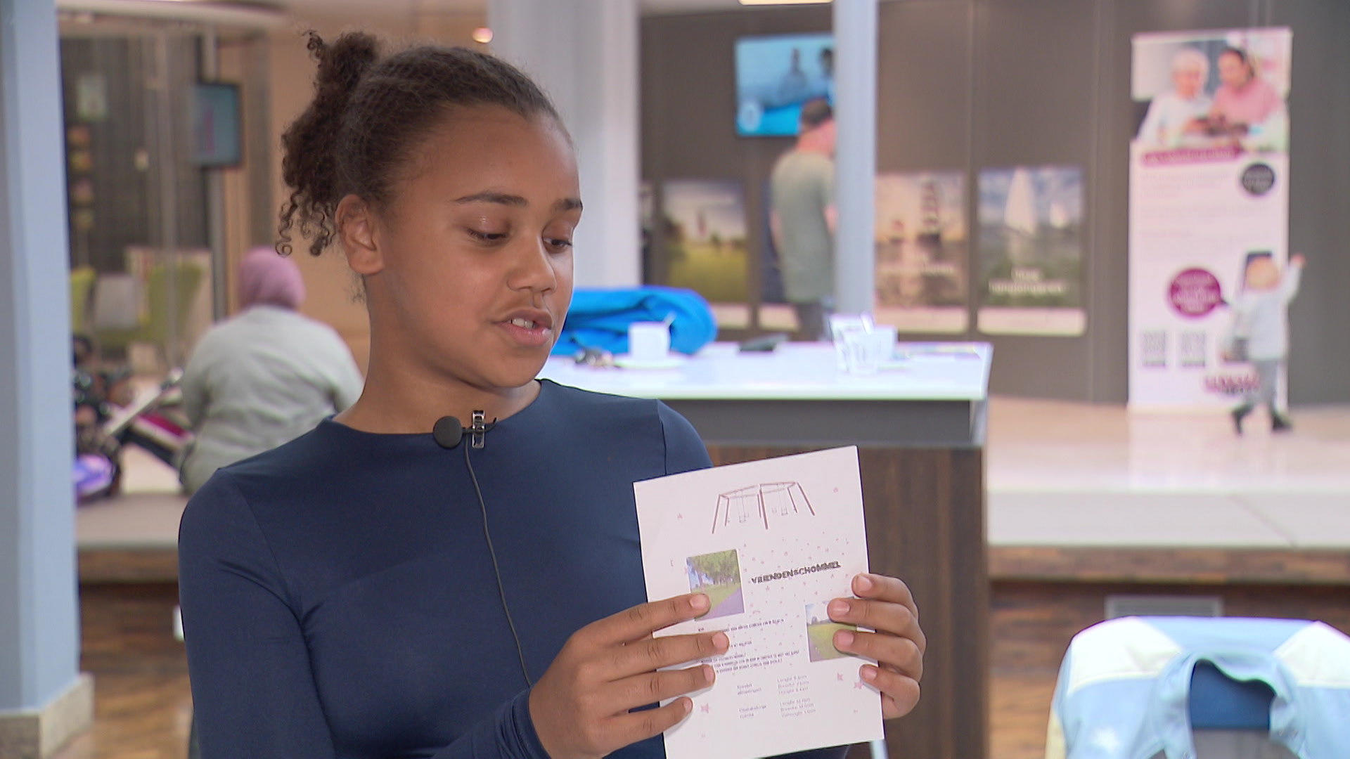 "Ons idee is de vriendenschommel", legt Imani Sankoh uit. Samen met haar vriendinnen bedacht ze een concept om het telefoonverkeer binnen de vriendenkring op een leuke manier te beperken: een zestal schommels in een kring. "Op de vriendenschommel kun je met zes vriendinnen schommelen en kletsen tegelijk."