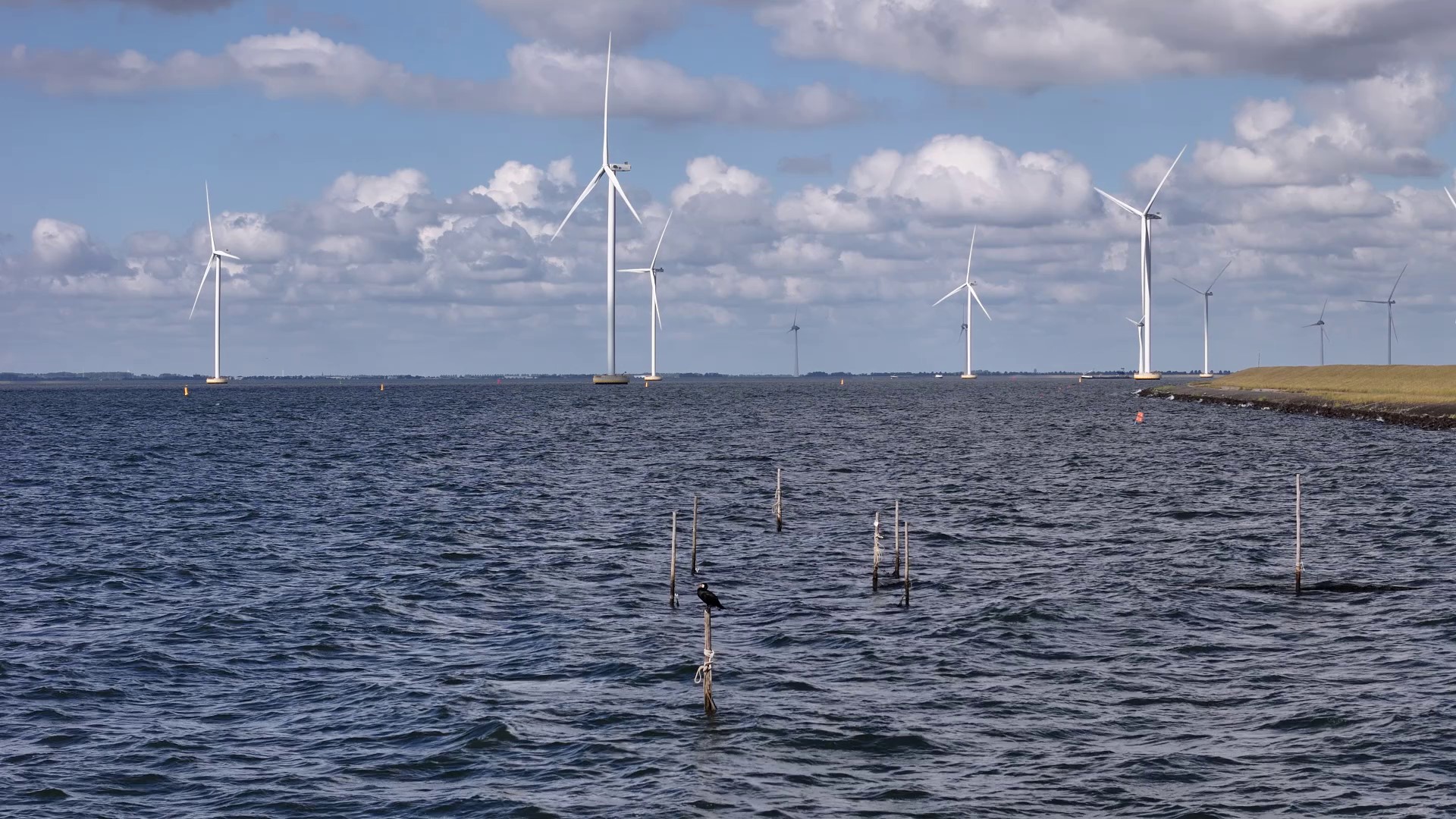 Camera's op IJsselmeerdijk registreren vliegbewegingen aalscholvers tussen windmolens