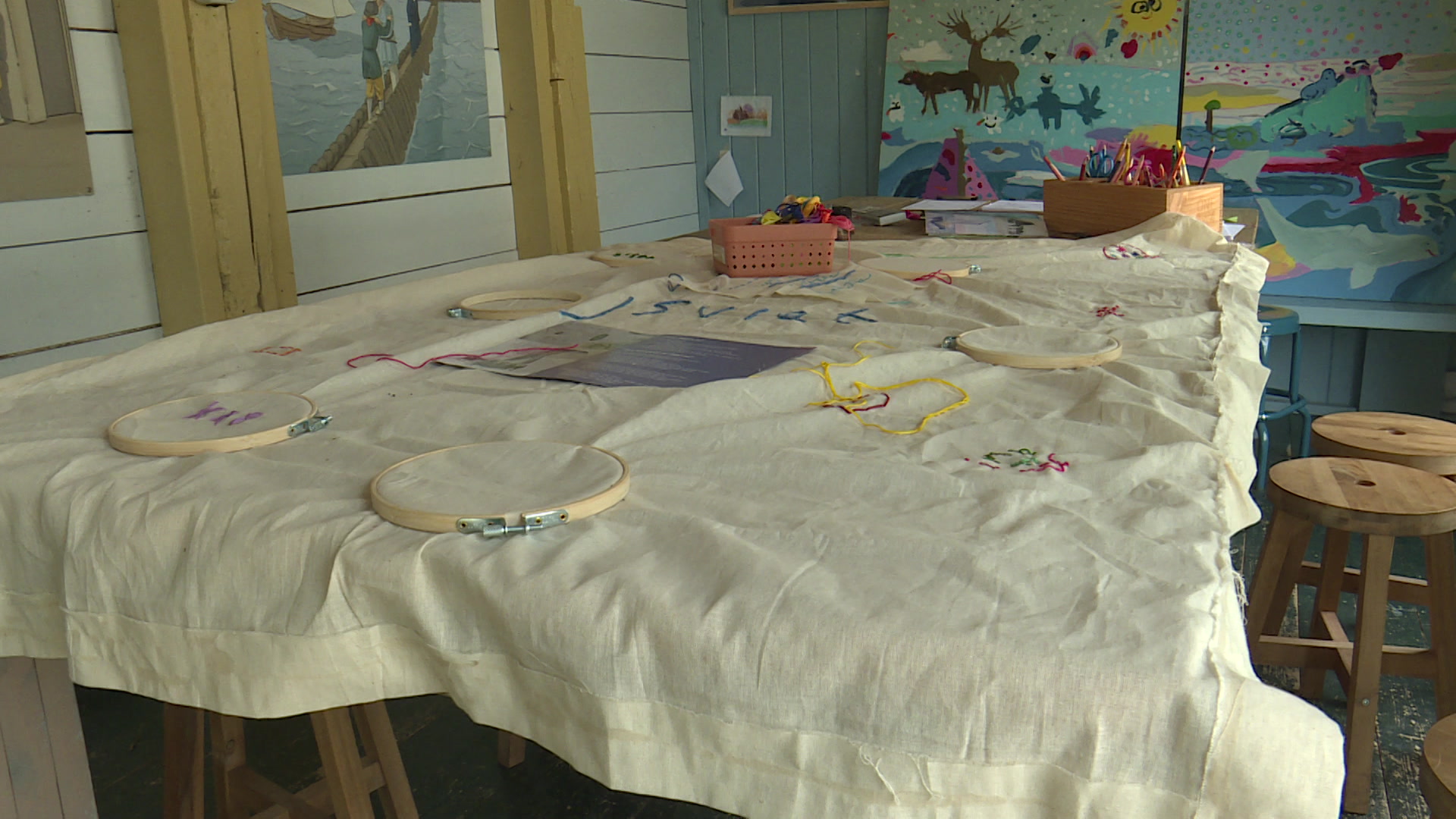 Dat knutselen aan de kleine replica van een ijsvlet deden de kinderen samen met kunstenaar Jennie Koffeman. Het bootje staat er al, maar de kinderen konden tekeningen maken en die werden op de boot geplakt. Daarnaast konden ze het zeil borduren.