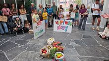 Demonstratie bij stadhuis tegen komst McDonald's in Oosterwold