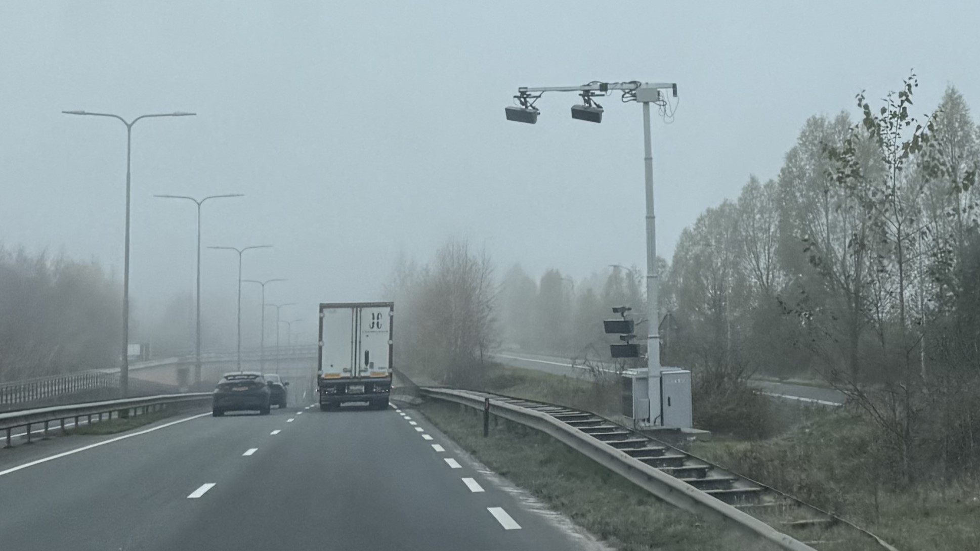 Het is een gigantisch apparaat dat zichtbaar wordt vlak voor het aquaduct bij Harderwijk. Weggebruikers lijken er soms van te schrikken en sommige bestuurders trappen snel op de rem. In tegenstelling tot wat er waarschijnlijk wordt gedacht, meet deze flitser niet de snelheid van auto's. Foto van de focusflitser