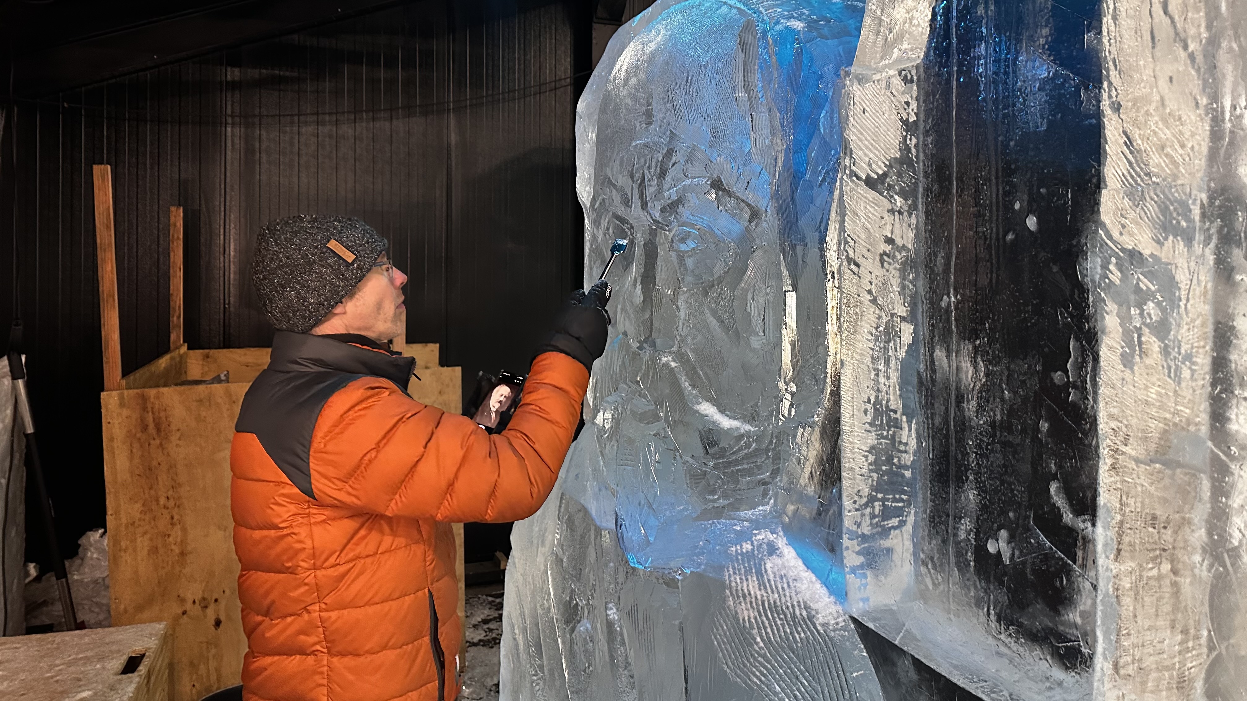 Met kettingzagen en slijpers gaan kunstenaars duizenden kilo's ijs te lijf voor het IJsbeelden festival