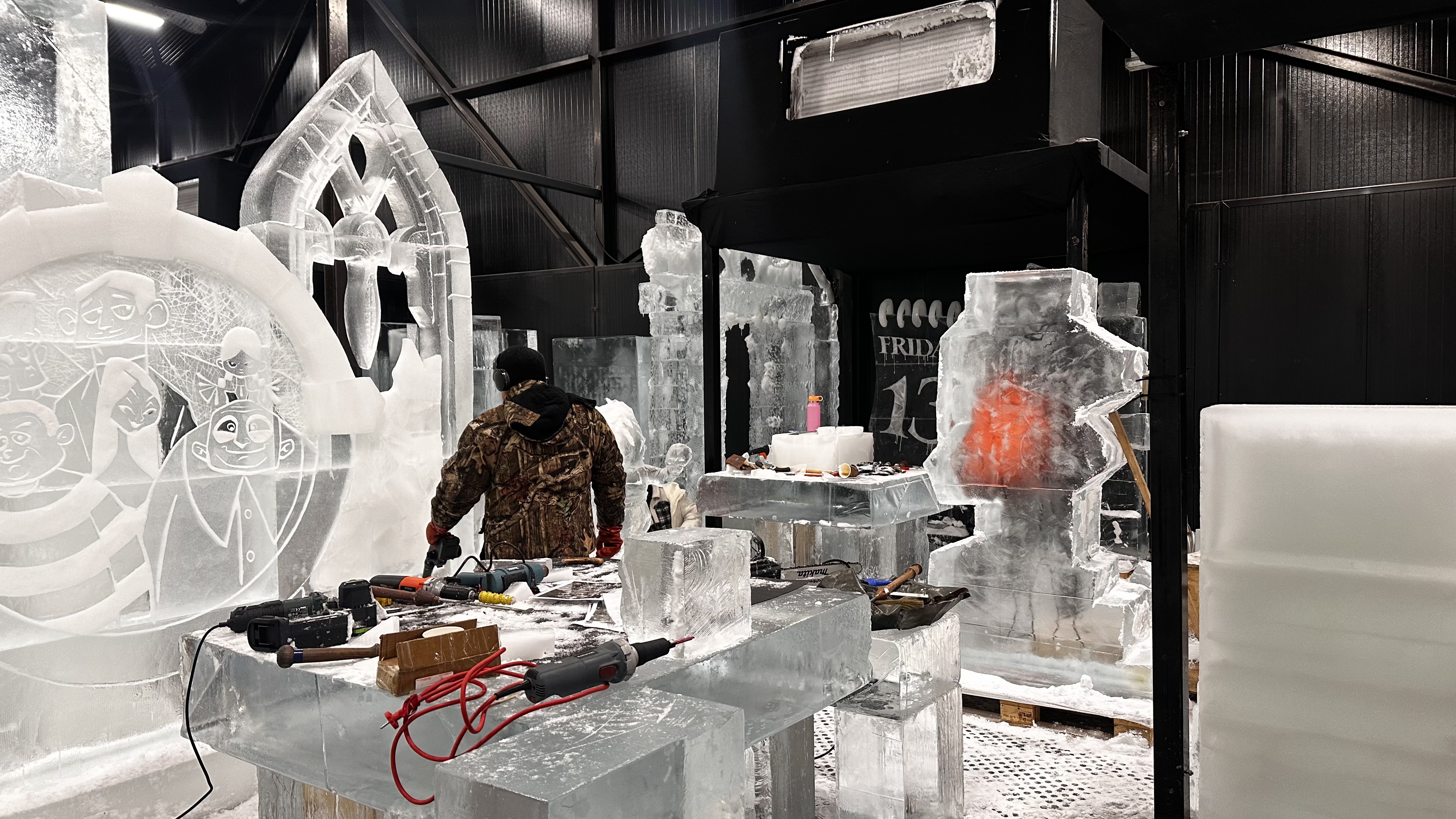 Al vijf dagen is een tiental kunstenaars bezig met de grote ijsblokken. Allemaal flink ingepakt, want de temperatuur in het gebouw van Flevonice in Biddinghuizen is flink onder nul. De eerste karakters uit films worden al zichtbaar. Harry Potter, Lord of the Rings en ook Mary Poppins. Langzamerhand veranderen alle blokken in ware filmsterren.