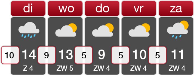 Tot en met woensdag is de winter ver weg, het wordt namelijk 13 of 14 graden in de middag. In de nacht en vroege ochtend is het 10 of 11 graden. Deze waarden passen meer bij half oktober of maart, want begin december hoort het normaal gesproken maximaal 6 of 7 graden te zijn en hebben we koude nachten met minima van net boven het vriespunt.