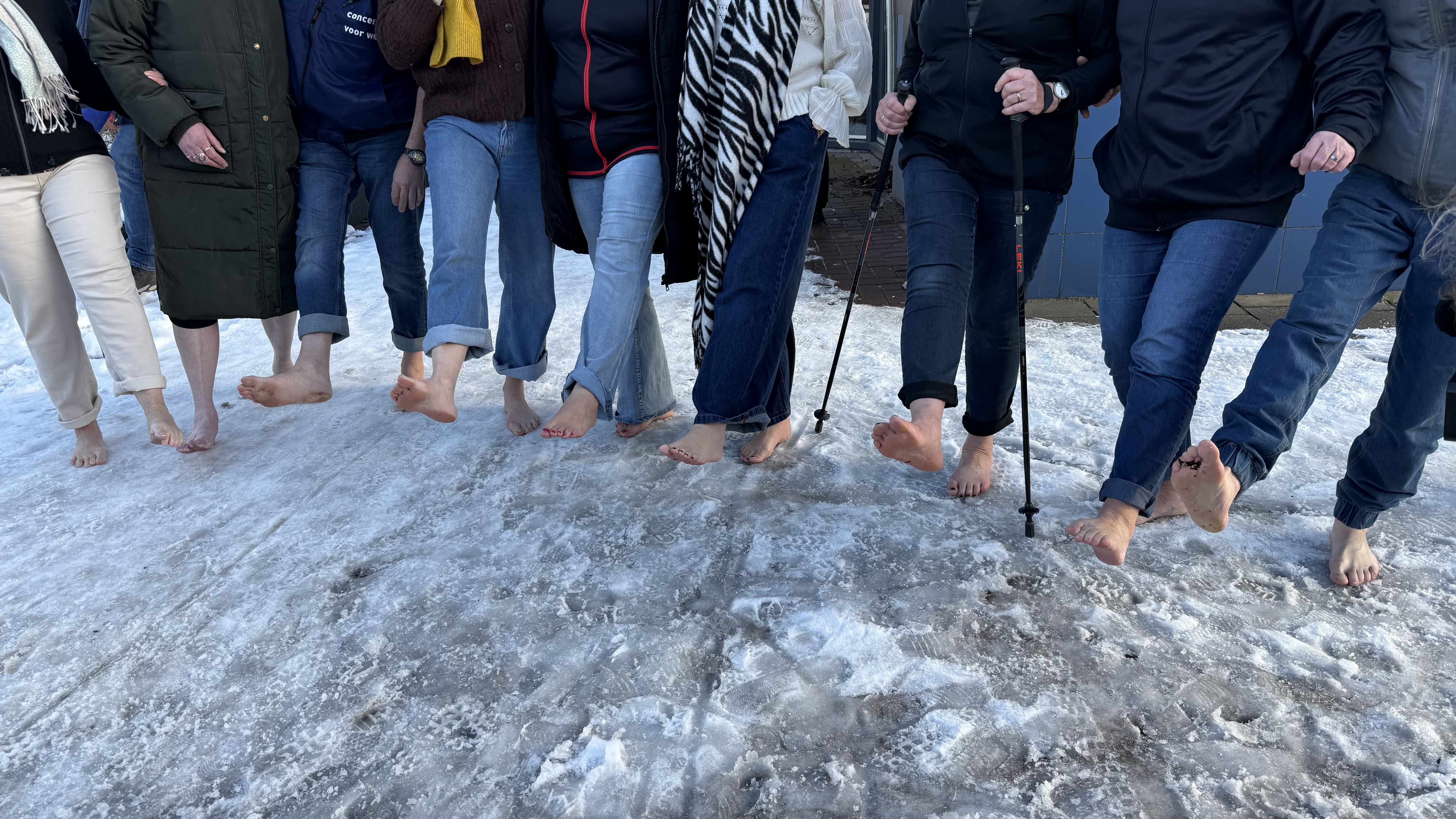 Om nogmaals aandacht te vragen voor het gebrek aan winteropvang in Noordoostpolder, en om geld op te halen, organiseerde het Leger een speciale sneeuwwandeling op blote voeten.
