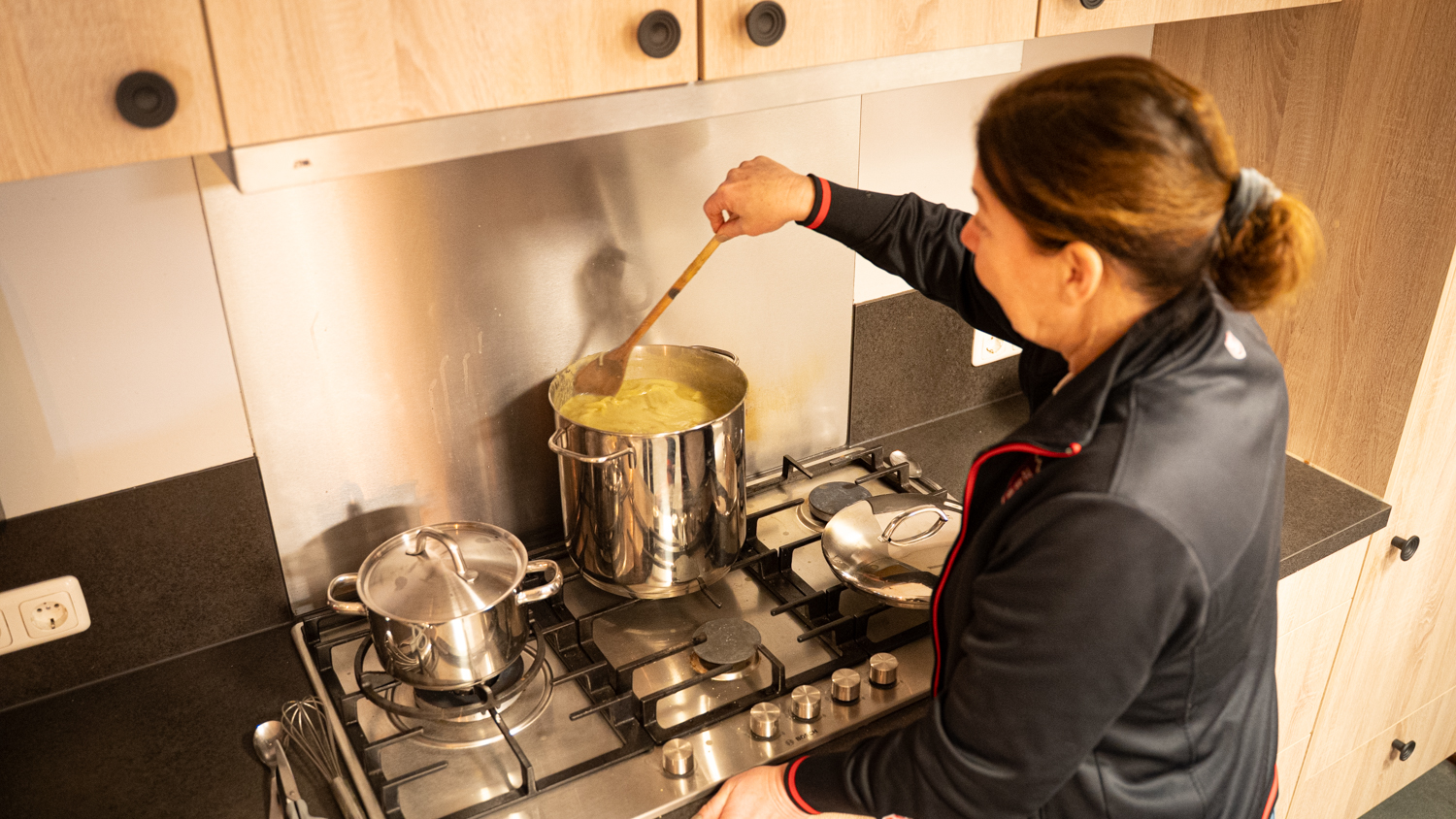 In de nacht naar zaterdag mocht de opvang meteen de eerste mensen laten overnachten. De thuisloze mensen, maximaal 10 per nacht, slapen gewoon in de woonkamer. De kledingrekken die er normaal staan worden aan de kant geschoven en de ramen worden bedekt door kamerschermen. De warme snert staat voor ze klaar.
