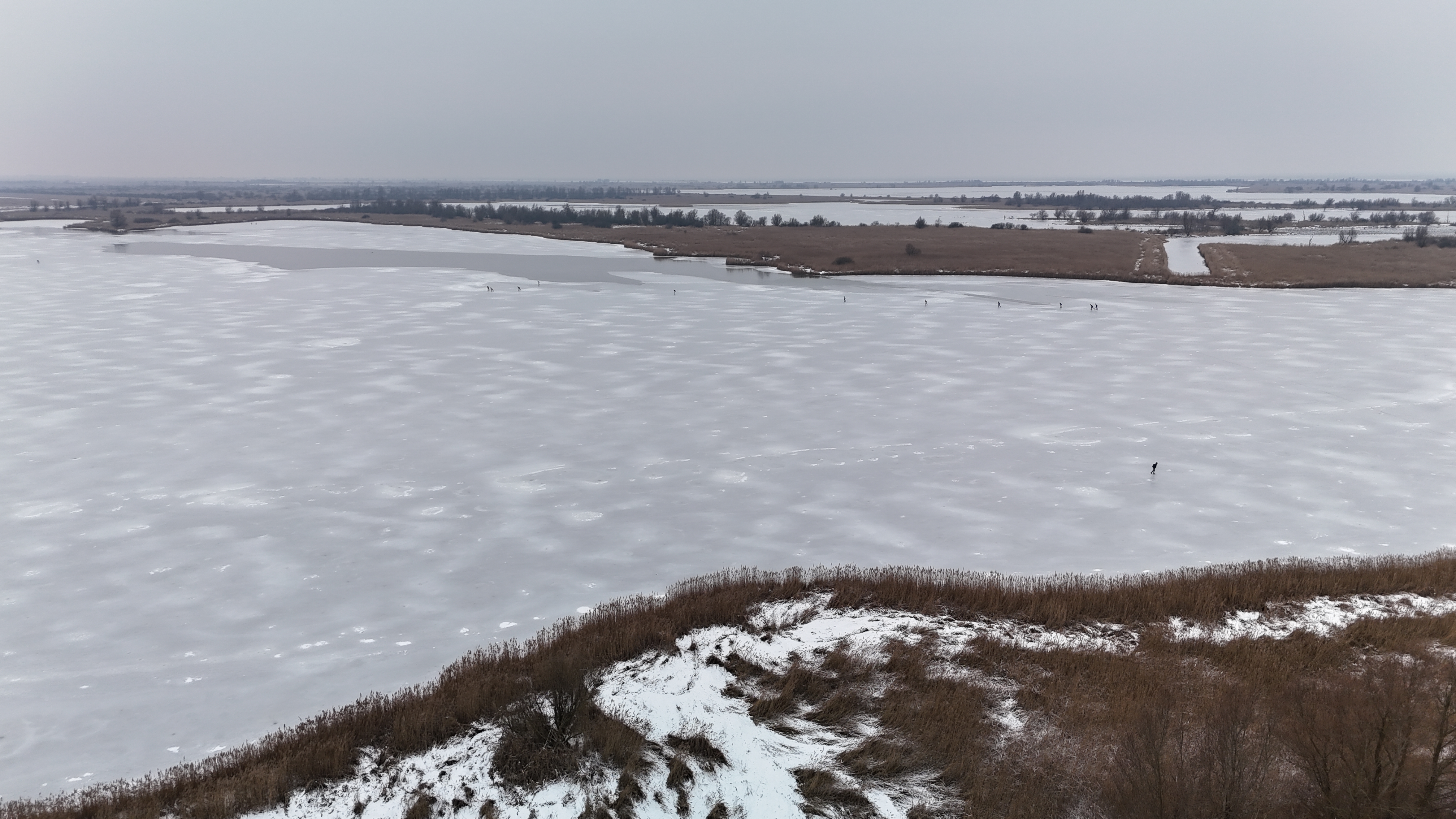 "Prachtig ijs. Lekker schaatsen hier. Super!" Op de Oostvaardersplassen bij Lelystad hoor je een en al positieve reacties. Meer dan vijftig mensen durfden daar het ijs op. Schaatsen onderbinden en gaan!