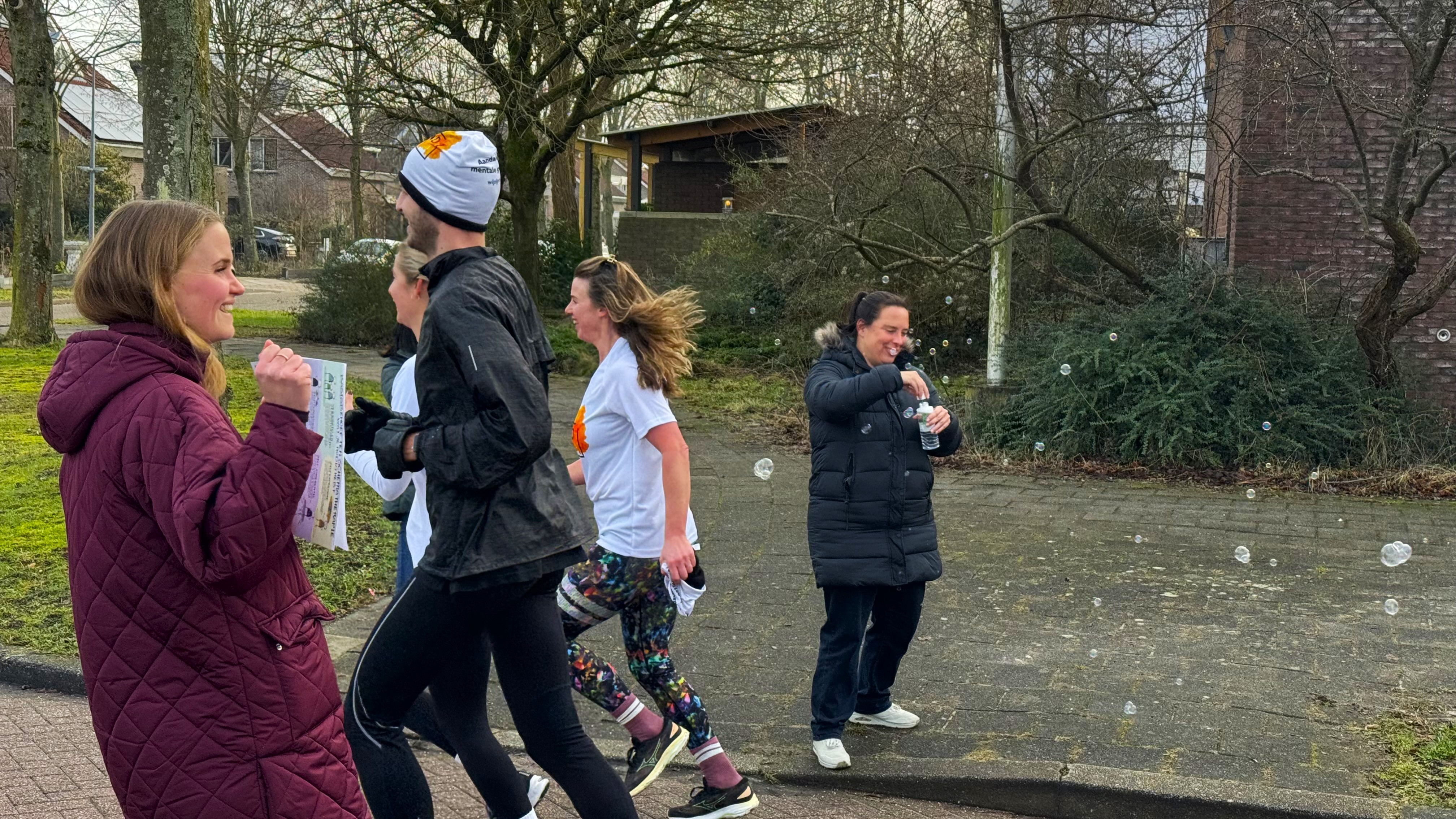 Onderweg kregen de deelnemers extra motivatie. Collega’s stonden langs de route met zelfgemaakte spandoeken en riepen hen toe. "Dat maakt het extra leuk", zegt Vos. "Het voelt echt als samen iets doen."