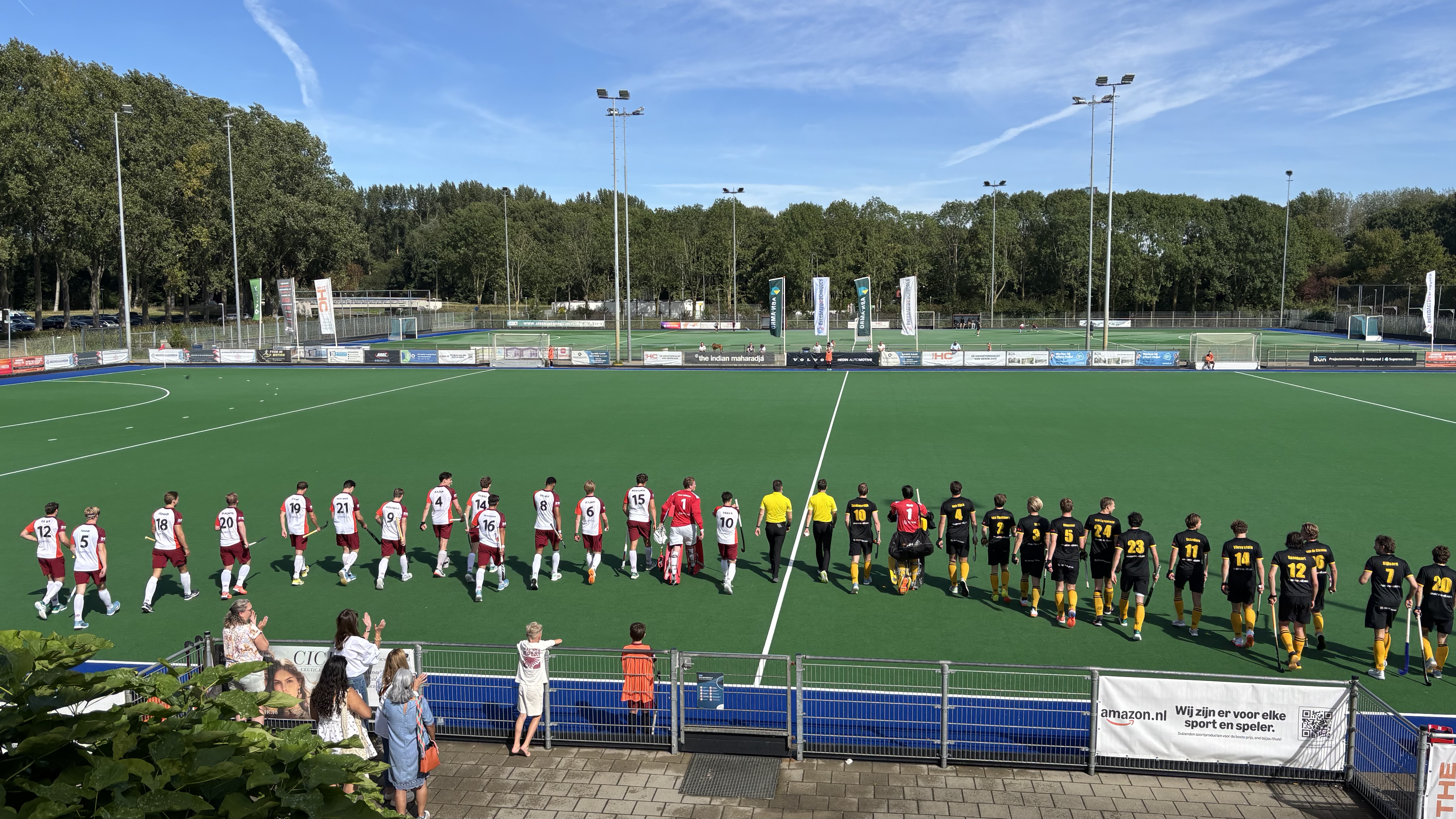 De Almeerders kwamen in het 1e kwart met 0-1 achter na een goal van Laurens Maagdenberg. In het 2e kwart herstelde de thuisploeg zich en werd de achterstand knap omgebogen in een 2-1 voorsprong: eerst tekende Thomas Delisle Hechavarria voor de gelijkmaker en vlak voor rust was Krijn Postuma succesvol uit een strafcorner.